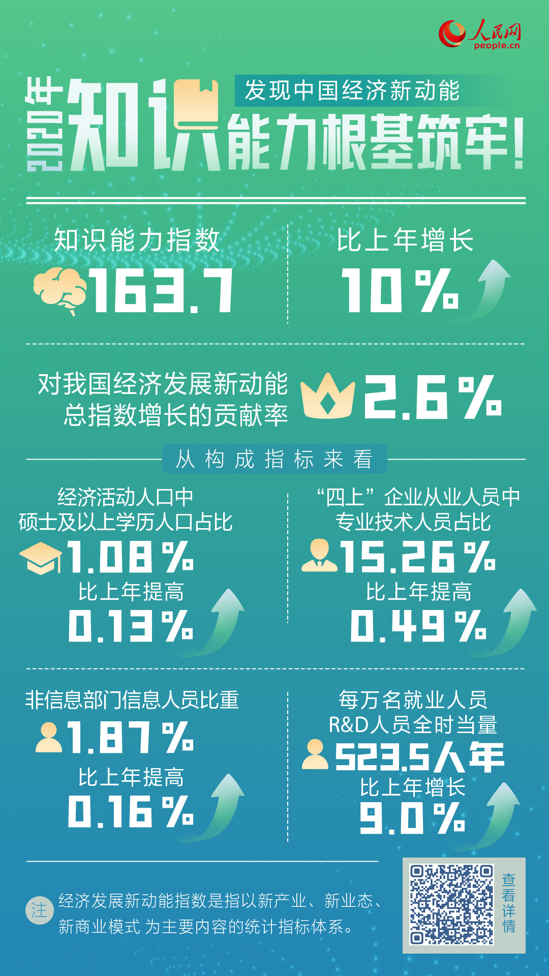 中国新经济新动能的发展由此获得强有力支撑。国家统计局统计科学研究所公布的数据显示,2020年我国经济发展新动能指数同比增长35.3%。其中知识能力指数同比增长10%,对总指数增长贡献率为2.6%。