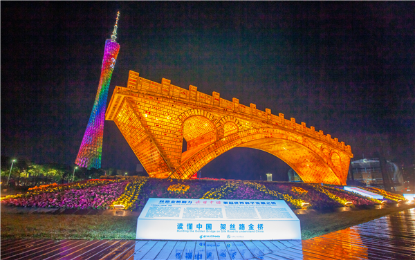 2021年“读懂中国”国际会议(广州)于2021年12月1日在广州启幕。“一带一路”大型主题艺术景观《丝路金桥》受邀助力“读懂中国”在广州海心沙展出,于12月1日上午在广州海心沙公园“丝路金桥”雕塑前举办揭幕仪式。