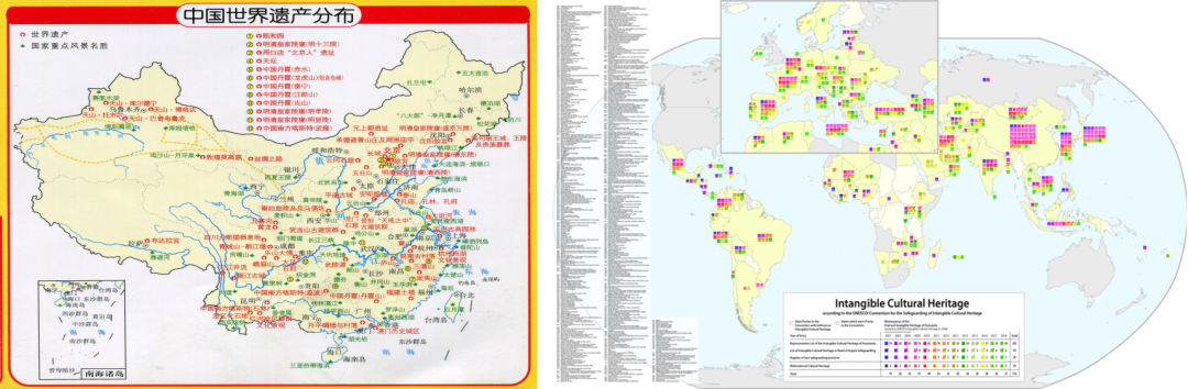 中国世界遗产的分布图