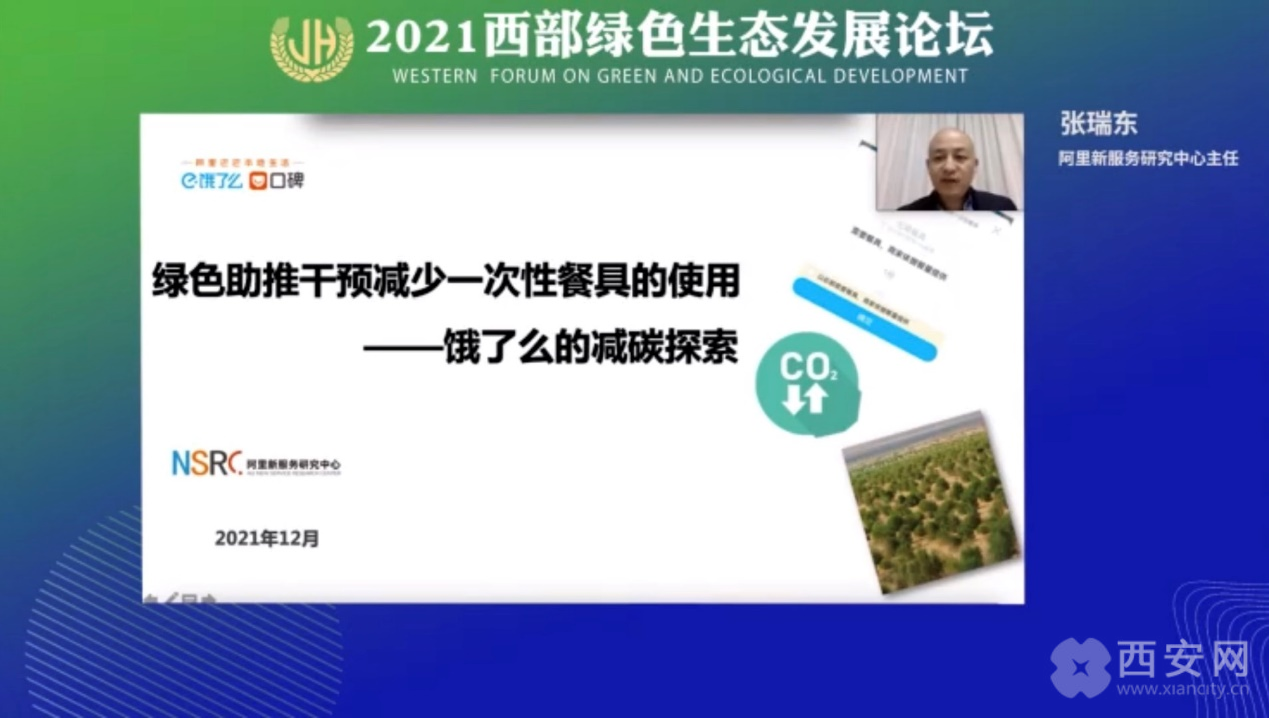 随后阿里新服务研究中心主任张瑞东带来了主旨发言《通过绿色助推干预减少一次性餐具的使用—饿了么的减碳探索》,为大家分享了饿了么平台如何利用数字技术对减碳工作的探索,并且表示未来将继续对减碳工作做出贡献。
