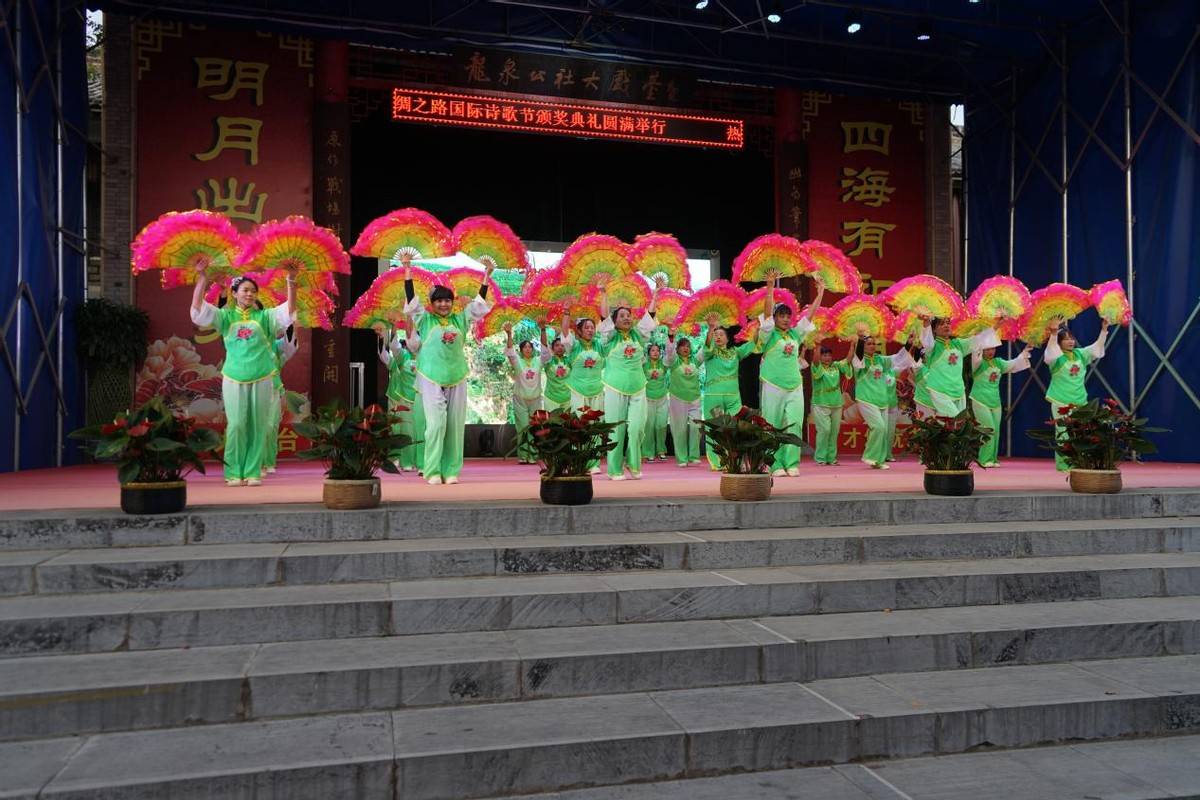 随后《放歌龙泉山庄,诗颂一带一路》主题诗歌朗诵会在龙泉山庄艺术队表演的《龙泉山庄欢迎你》的鼓舞中拉开序幕。国家一级歌唱家沙莎的《龙泉美》歌伴舞把气氛掀向了高潮;董发亮作词的《沁园春.农泉山庄》、伏萍作词的《龙泉山庄,我爱你》,让观众领略了龙泉深厚优美的艺术气质之美;第六届中国作协副主席黄亚洲《中国的丝绸,世界的霞光》、王芳闻《丝路颂》、凌晓晨《蜀河古镇》、田继光《河西走廊掠影》等诗电影,和北塔《盛泽,从一根丝开始》诗朗诵,更是运用诗乐音画影结合,展示了丝绸之路千年的灿烂辉煌。