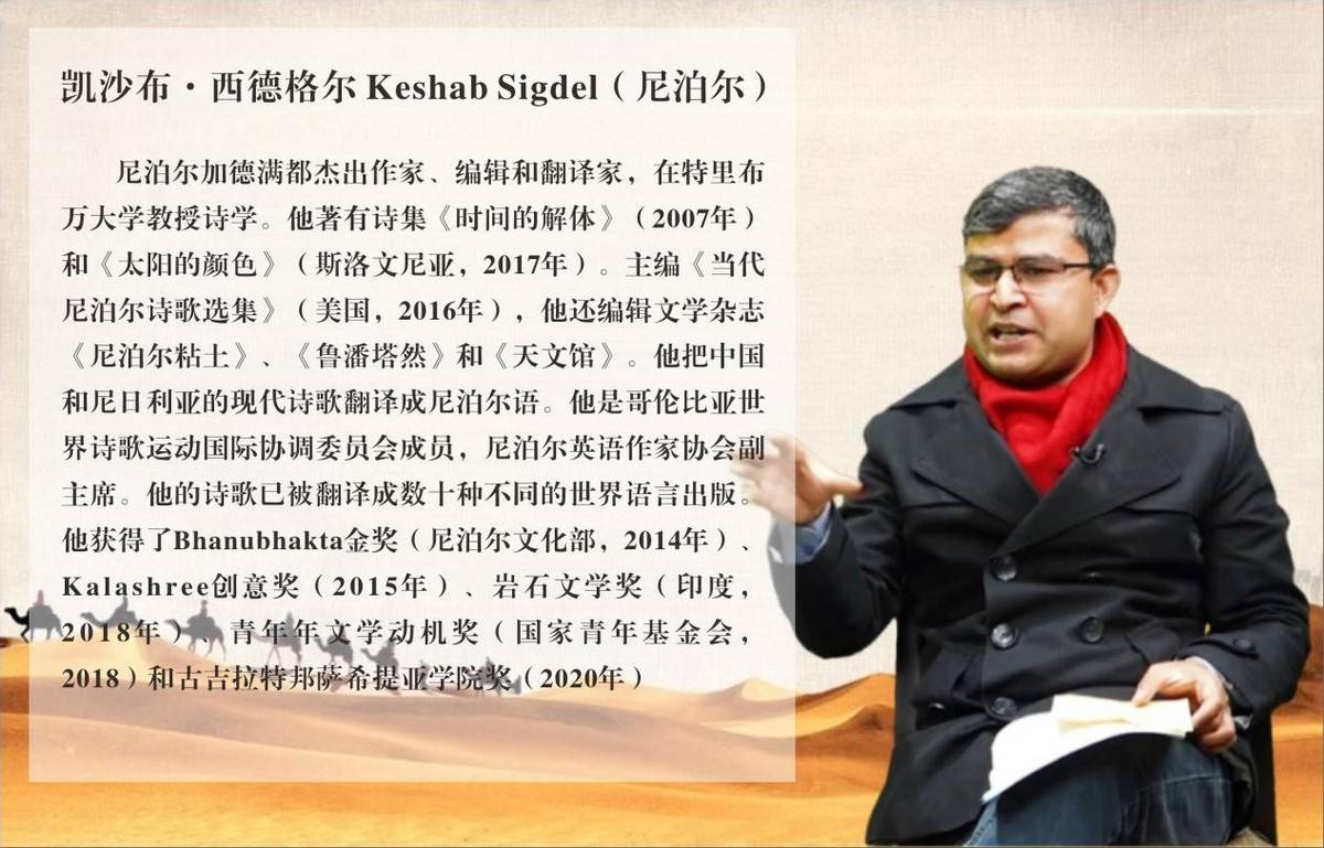 尊敬的曹谁和2023年第四届丝绸之路国际诗歌艺术节组委会成员,我在尼泊尔加德满都向你们问候。我非常高兴收到您的电子邮件,其中提到我被提名为2023年10月28日在中国古都西安举行的第四届丝绸之路国际诗歌节银骆驼奖。