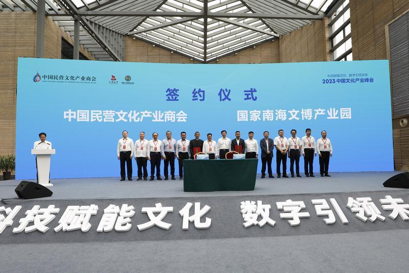 会上还举行了颁奖及签约活动。其中,中国民营文化产业商会会员总部基地签约入驻国家南海文博产业园,为广大民营文化企业提供了共商、共建、共享的平台,进一步优化和丰富了文博园综合产业链条。大唐西市集团与陕西广电网络签署战略合作协议,双方将围绕发展数字经济、开发文化数字化展示应用场景、推进国家文化大数据体系建设等方面进行合作,推动文化产业和数字经济的融合创新发展。