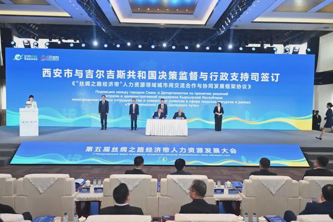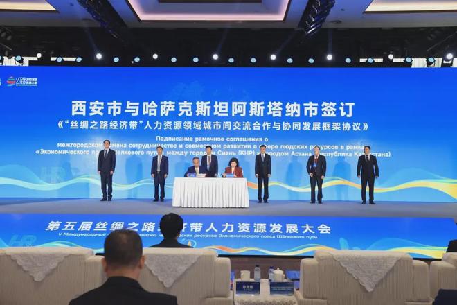 合作签约环节,西安市与哈萨克斯坦、吉尔吉斯斯坦分别签订《“丝绸之路经济带”人力资源领域城市间交流合作与协同发展框架协议》,推动建立城市间人才政策协同、资格互认、信息共享新机制。